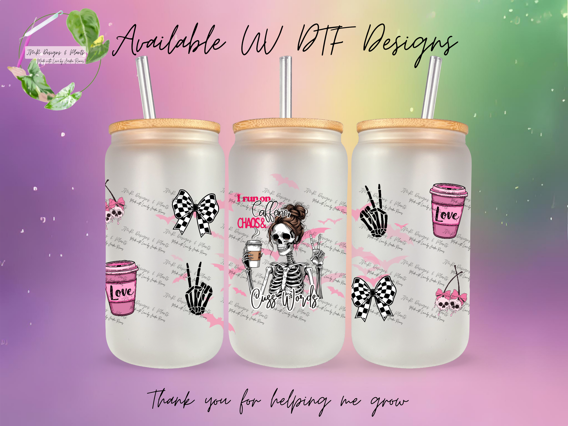 This is a Design Print for UV DTF Wrap made for 16/20 oz snowglobe cups. You will select your base material, and then select your desired design print. JMR Designs and Plants will press the print to your selected material and ship you the finished product
