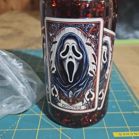 16 oz Snow Globe Tumbler "GhostFace Red/Black Glitter"