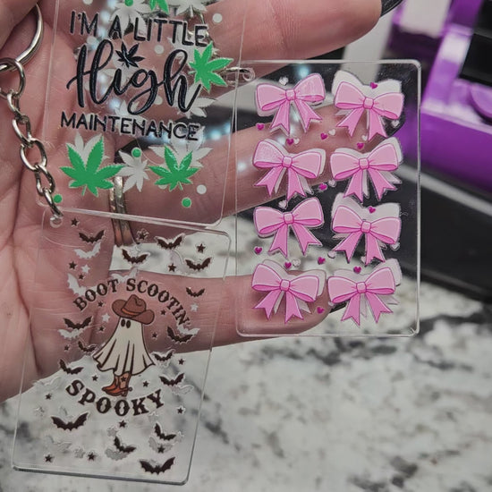 Our Ready to Ship Keychains are available in two versatile materials—metal or acrylic—with multiple sizes and shapes to suit your needs. Select your preferred keychain at checkout.