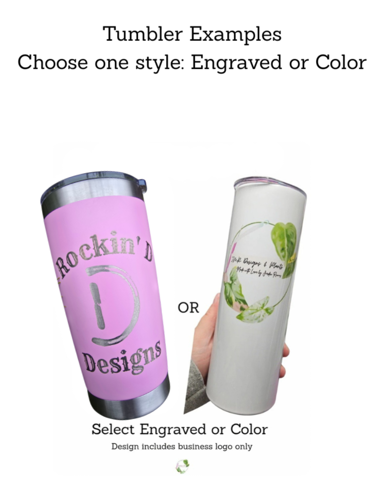 - 1 20 oz Tumbler (Engraved/Color) W/ your brand